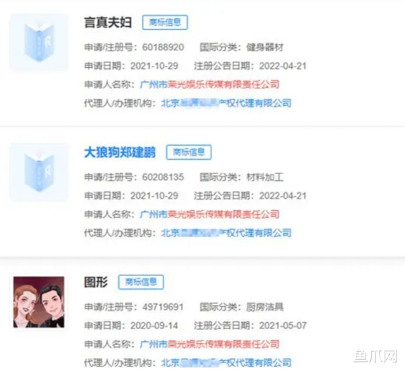 不少人都知道广东夫妇是签约在MCN机构无忧传媒集团有限公司旗下,但是应该很少人知道,这两人还拥有自己的公司,而且对涉及到的商标已经提前注册进行了保护。