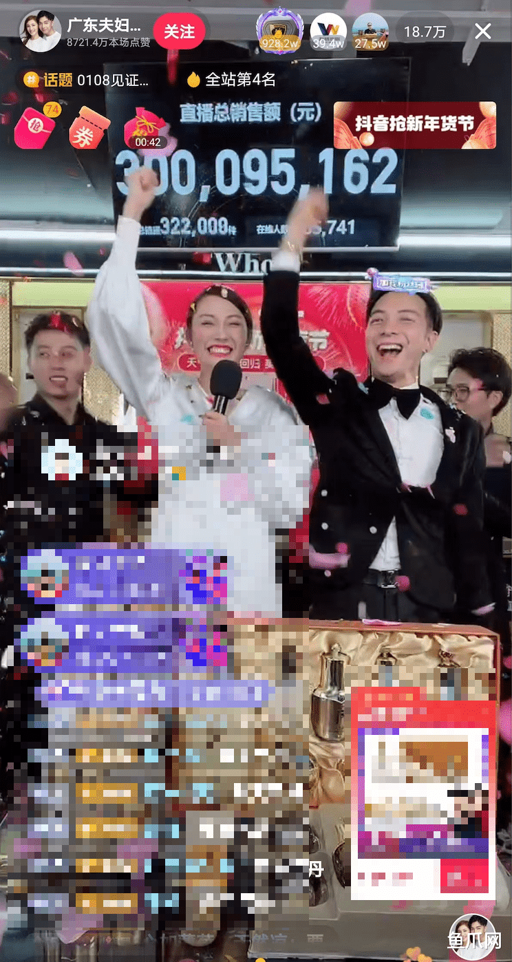 正值618大促,抖音上有哪些主播已经取得了好成绩呢?6月1日,网红“广东夫妇”直播一小时销售额破亿,该话题瞬间冲上热搜,网友直呼“这对夫妻真是太会做生意了!”、“销售额比一般的企业都厉害太多!”今天咱们就来和小鱼儿一起盘一盘这对“赚钱夫妻”。