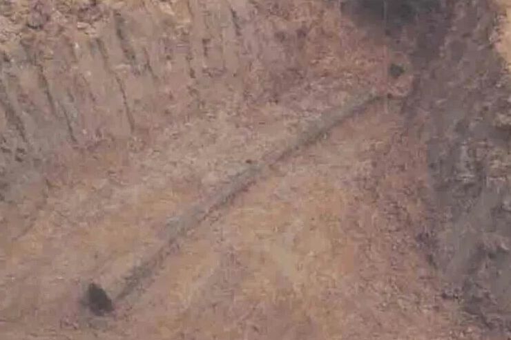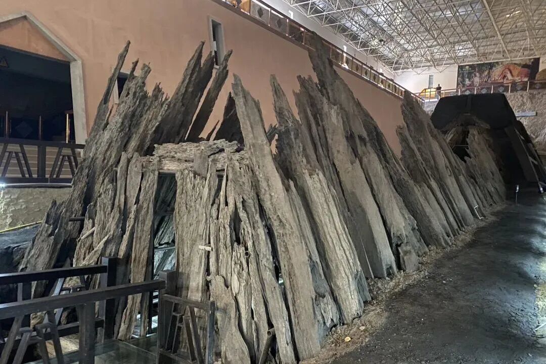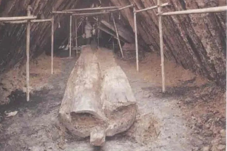 墓室由巨大的方形长枕木构筑而成,呈狭长巷道式,横截面竟然是三角形的。这种形制在国内考古中从未见过。整座木椁长34.8米,宽6.7米,分为前、中、后三室,每室之间设有门槛、门梁和木制隔墙。中室安放着墓主人的棺椁——一个由整根巨大圆木挖成的独木棺,长6.05米,直径1.12米。这是全国迄今发现的最大的独木棺。