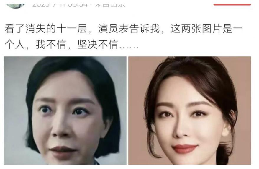 时隔两年的《消失的十一层》更是直接大变样,饱满的苹果肌,紧绷动弹不得的肌肉,整张脸特别地僵硬,有的观众看完剧都没认出来是陈数演的。