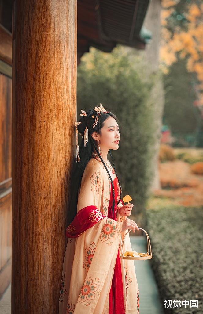 一名黄衣女子走到树下。