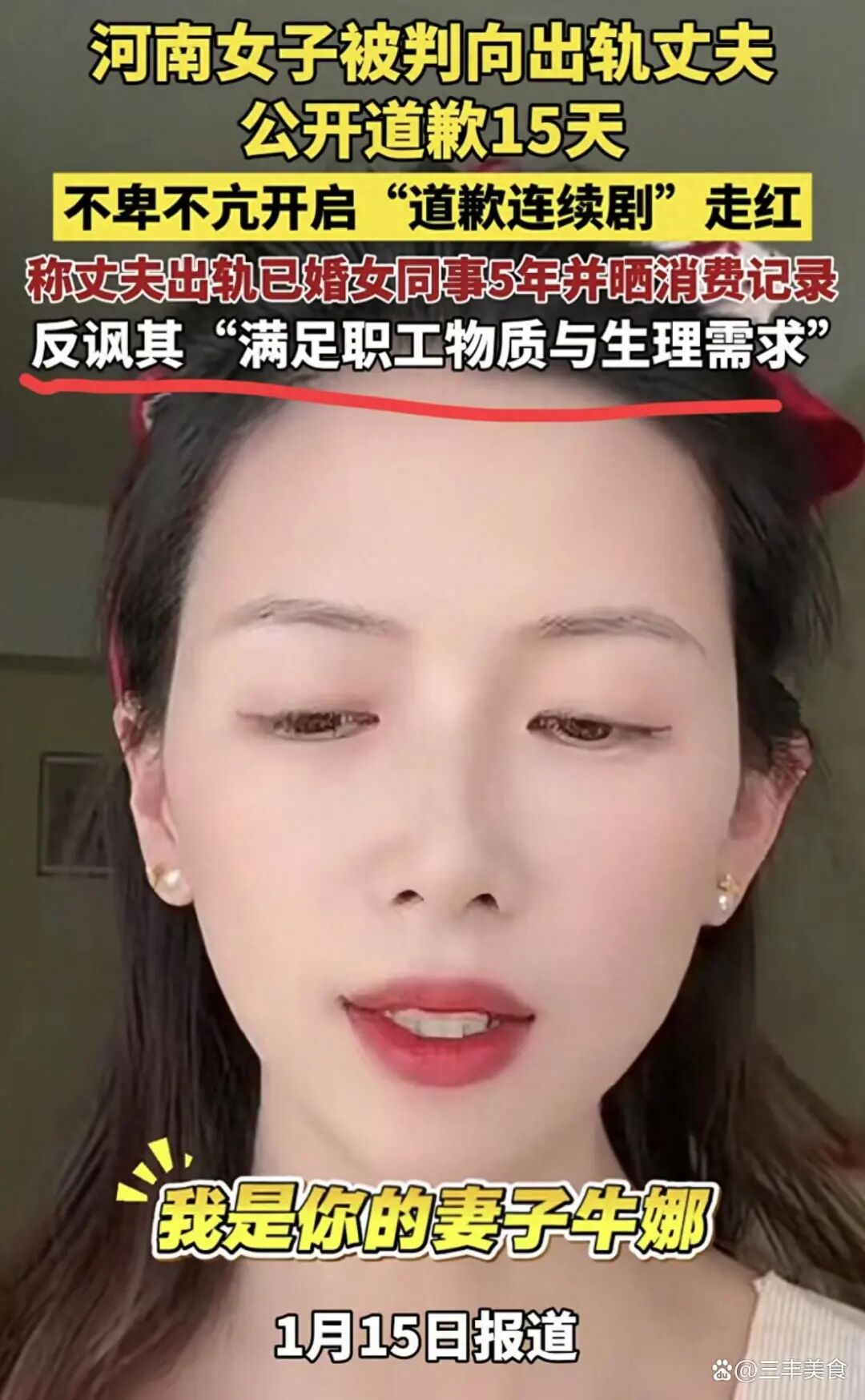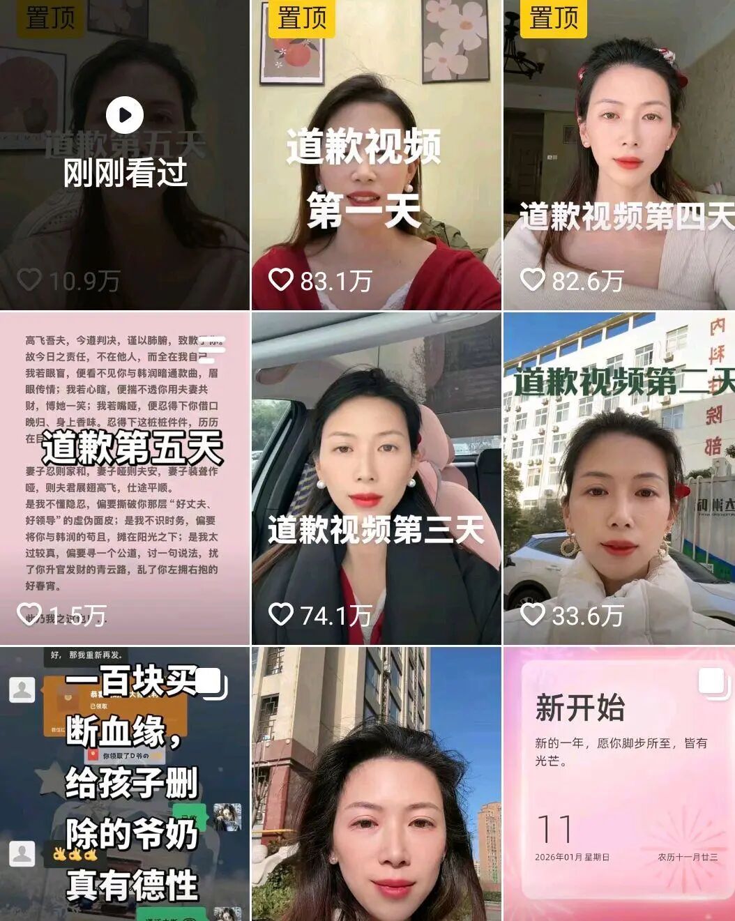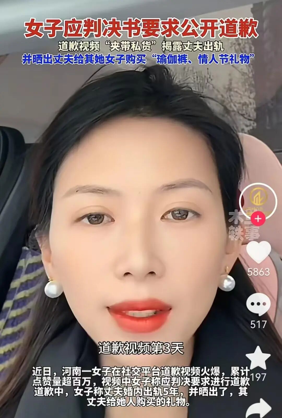 近日,河南三门峡一名女子连续五天发布“道歉”视频,粉丝暴涨至40万,但每句“道歉”都像一把精心打磨的刀,刀刀指向出轨的丈夫。