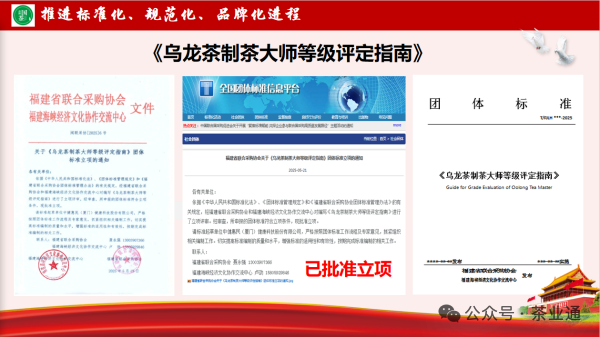 《中国制茶大师等级评定指南》和《中国茶行业品牌建设星级评价指南》二项团体标准于2024年10月21日全国团体标准信息平台发布生效,这两项标准的发布标志着中国茶行业在品牌建设和制茶工艺方面的重大进步,强力推进中国茶行业标准化的进程,全方位推动了茶产业的标准化、规范化、品牌化发展。