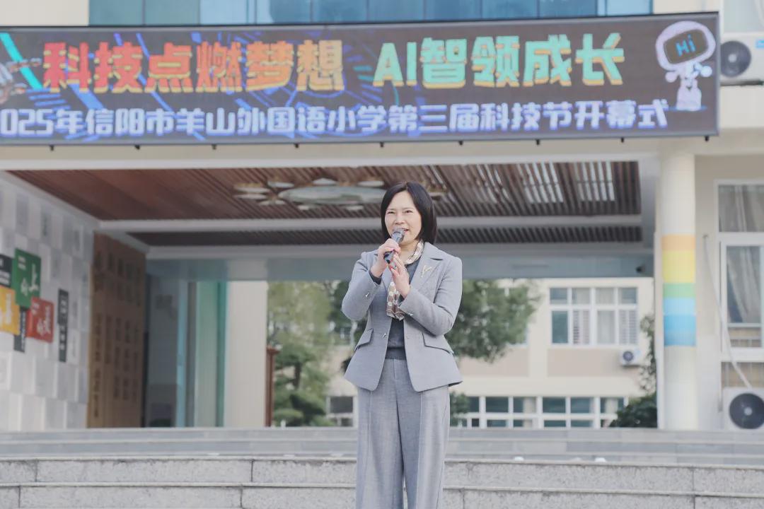 2025年11月3日,信阳市羊山外国语小学全体师生齐聚操场,在庄严的升旗仪式中,正式拉开了第三届校园科技艺术节的序幕。一场以“科技点燃梦想,AI智领成长”为主题的创新盛宴,正席卷整个校园!