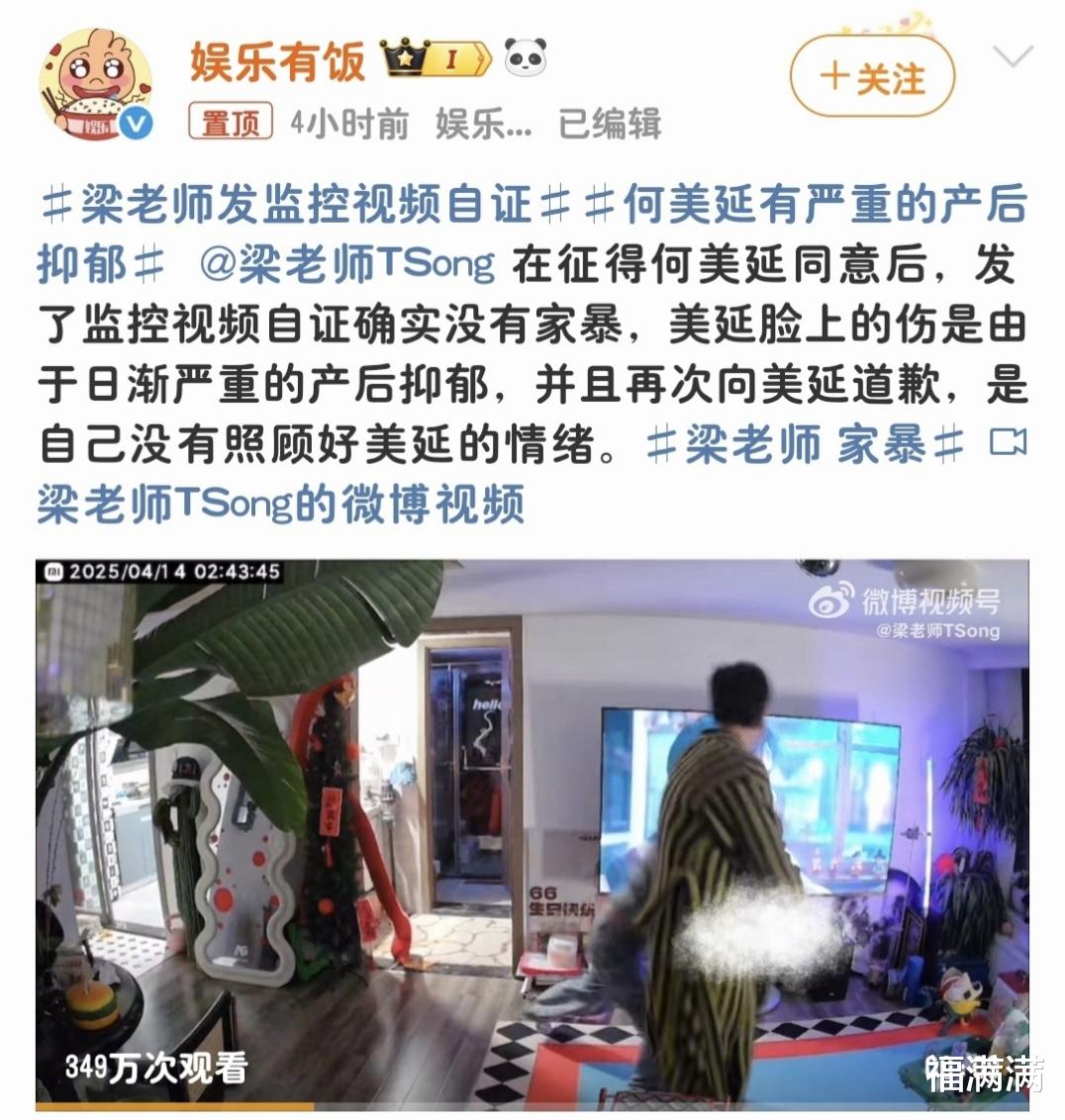 事情的起因想必大家都有所耳闻,此前似乎有关于梁老师家暴何美延的传闻甚嚣尘上,一时间舆论纷纷指向梁老师,让他陷入了巨大的争议漩涡之中。然而,事情出现了反转。梁老师在征得何美延同意后,公布了监控视频,以此来证明自己并没有实施家暴行为。这一举措无疑打破了之前的不实传言,让真相浮出水面。
