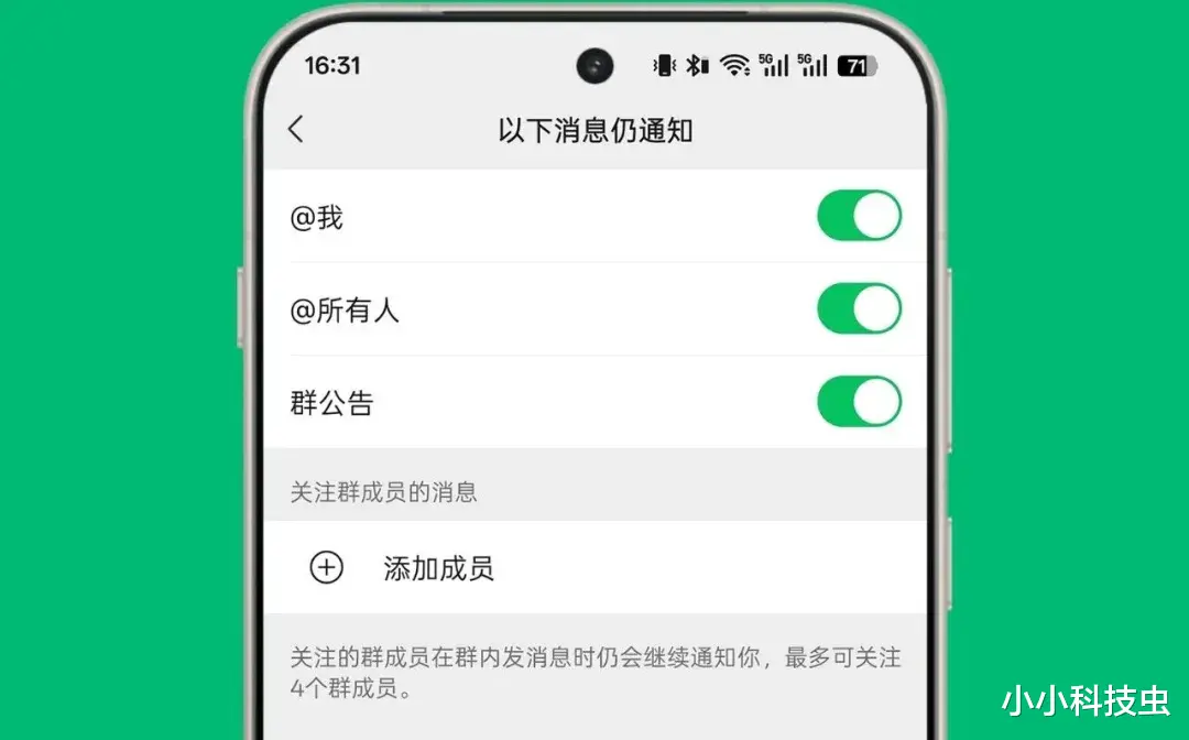 升级到 8.0.66 版本后,在群聊设置中,即使开启了「群消息免打扰」,也可以单独打开一个「部分消息仍通知」的开关。