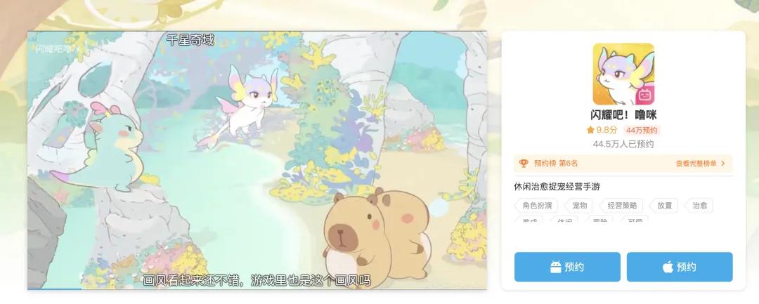 《闪耀吧!噜咪》则是一款竖屏捉宠游戏,3个玩法构成了游戏的体验循环:冒险捉宠、模拟经营和PVP。目前游戏已经过首轮测试,在TapTap、好游快爆和B站上的评分为8.8分、9.4分和9.8分。