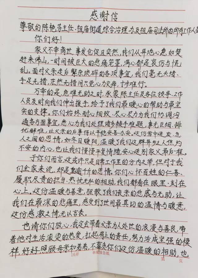 唐某家属在事后寄来的感谢信中写道:“你们雪中送炭的恩情,如冬日暖阳,温暖了我们这群异乡人焦灼不安的内心。”“于你们是分内之责,于我们却是重逾千钧。”