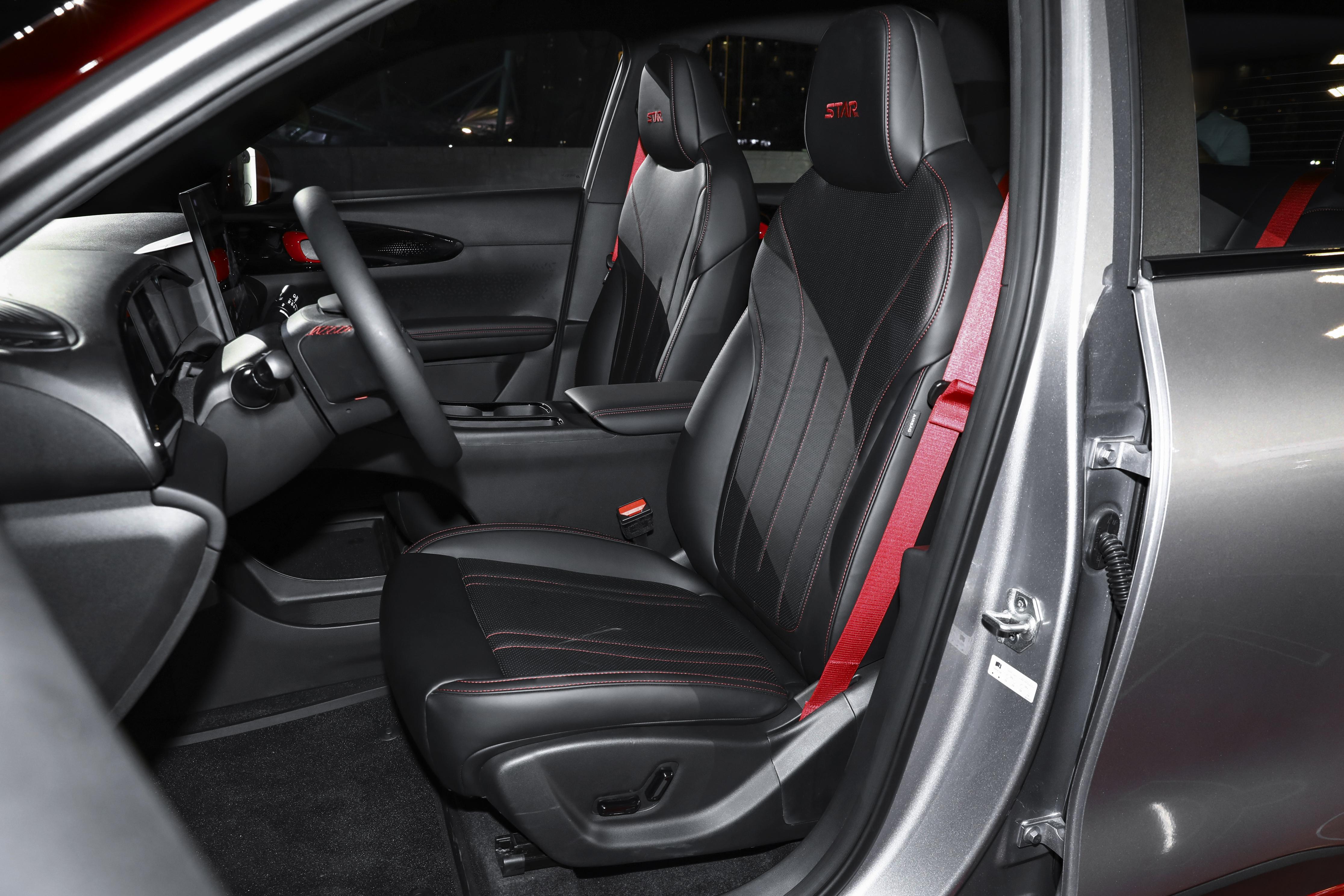 空间一直是星愿系列的核心优势,STAR限定版基于GEA架构打造,通过电机后置、散热器斜置等布局优化,实现85%的得房率,打造出准B级大五座空间。身高180cm,坐进前排调整好驾驶坐姿后,头部有一拳两指的余量,头顶开阔不压抑,腿部空间可根据驾驶习惯自由调节,长时间开车不会觉得憋屈。来到后排,腿部能获得两拳的富余空间,头部也有一拳的距离,座椅填充物柔软厚实,支撑性到位,即使长途乘坐也不会感到局促疲劳。后排地板纯平无台阶,中间乘客脚部活动空间不受限,满员5人出行时,中间位置乘坐舒适度也很在线,不会出现硌脚、挤腿的情况。