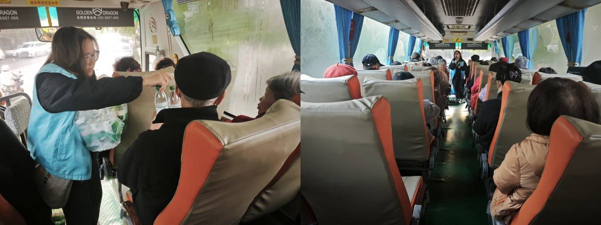 以上为社工在大巴车上讲解相关事宜照片