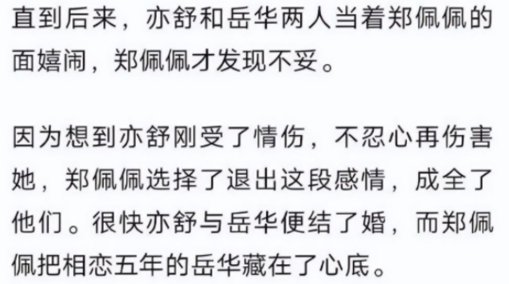 彼时的亦舒刚经历了一段失败的婚姻,心情低落,郑佩佩对她十分同情,甚至在与岳华的约会中,也常常带着亦舒一起。
