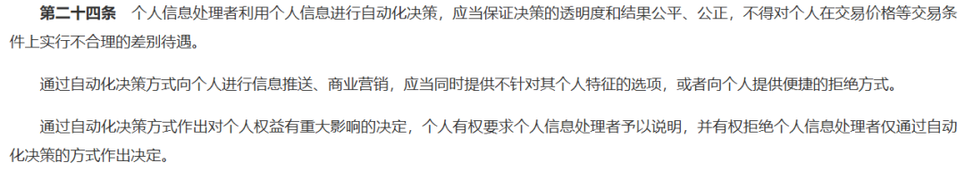 实际上,中国实施纽约州的类似法律已具备一定可行性。我国的《个人信息保护法》在第24条已经明确规定:“个人信息处理者利用个人信息进行自动化决策,应当保证决策的透明度和结果公平、公正,不得对个人在交易价格等交易条件上实行不合理的差别待遇。”国家网信办等四部门发布的《互联网信息服务算法推荐管理规定》,对算法的公平公正提出了具体要求。