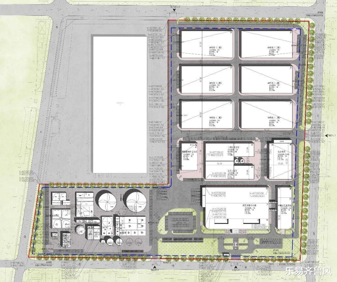 项目总用地面积约为136248㎡(204.372亩),其中规划工业用地约为135633㎡,总建筑面积约为110432㎡,容积率为1.55,建筑密度为39.6%。地上建筑包括综合库房、干燥及包装车间、研发及联合车间、公用工程间、预留酵母扩培车间,东北角为6栋3层丁类车间(二期)等。