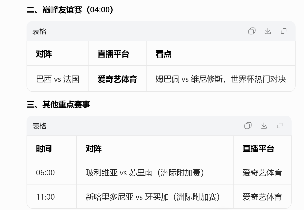 三、观赛指南必看场次:巴西 vs 法国(04:00)、意大利 vs 北爱尔兰(03:45)、波兰 vs 阿尔巴尼亚(03:45)。