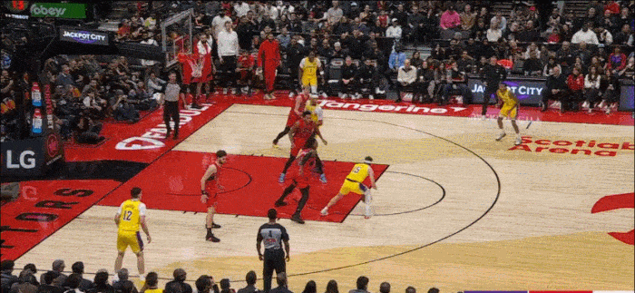 里夫斯假投篮 防守人轻跳了一下 侵犯了他的投篮圆柱体 顺手投篮2+1