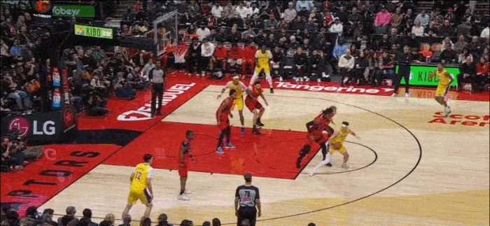 过艾顿掩护 造追尾三分犯规 (这有时候在联盟不会吹三分投篮犯规 但纯看裁判临场)