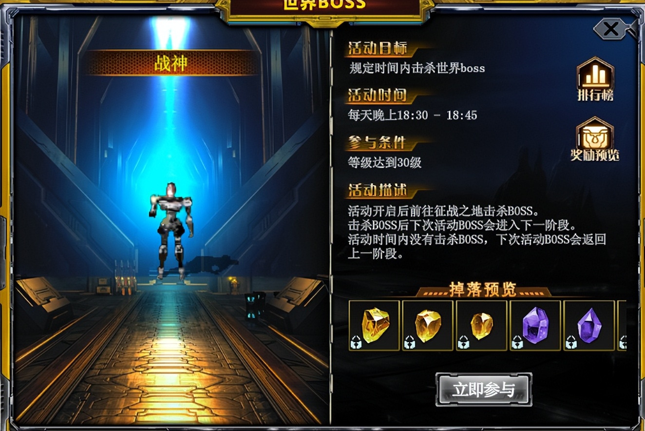 基本信息准入门槛:玩家角色等级达到30级即可参与,无需组队,单人也能贡献伤害。