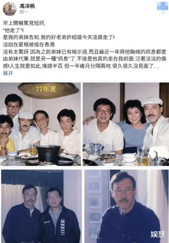 值得一提的是,几日前许绍雄去世时,冯淬帆还曾晒出多张年轻时的旧照缅怀老友。