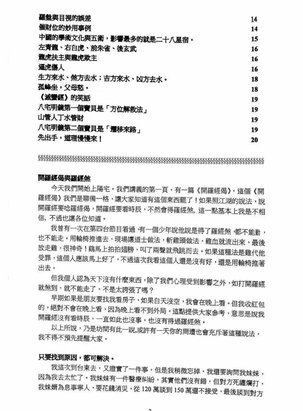 典籍最珍贵的价值,在于 “将专业风水知识转化为通俗实用的生活指南”。劝学斋主并未纠结于复杂的理气推演,而是以 “课堂笔记” 的亲切形式,将抽象原理融入具体案例:讲解罗盘使用时,会关联 “某小区住宅坐北朝南、大门开在巽位” 的实例分析;阐述化煞技巧时,会结合 “某住户横梁压床致睡眠不佳,以吊顶化解” 的真实经验,这种 “理论 + 案例” 的呈现方式,让零基础读者也能快速上手。同时,书中贯穿 “理性看待风水” 的态度,既传递传统经验的智慧,又不夸大其词,恰如其分地平衡了文化传承与实用指导的关系。