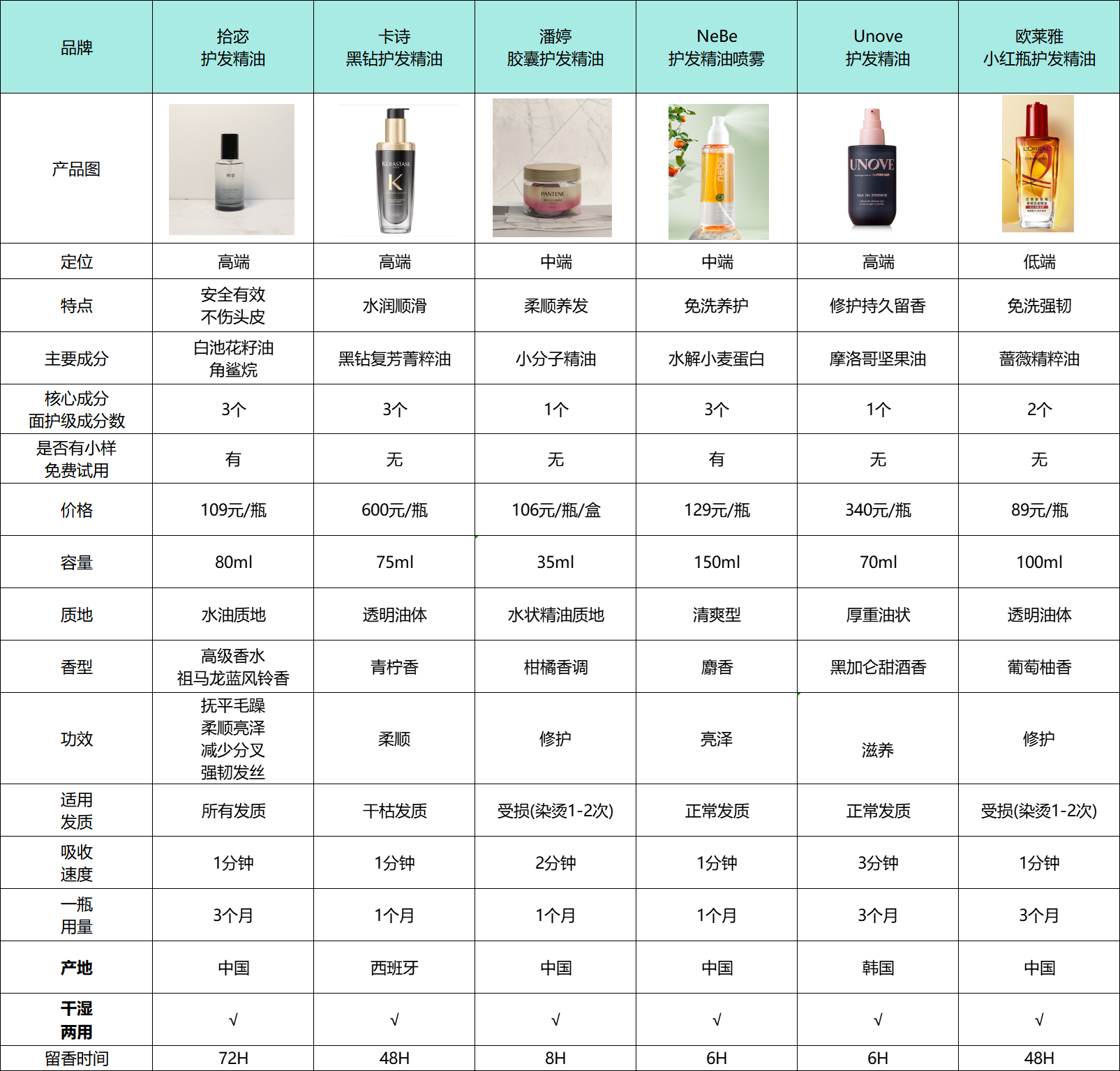 在挑选护发精油时,先看看这些产品的核心数据十分必要。下面的表格能帮你清楚地对比每款精油的优缺点,让选购变得更加简单。