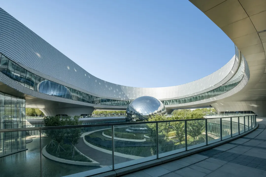 科技馆由Perkins&Will设计,以“玉如意”与“银白飘带”为灵感,融入地域文化元素。整体形态宛如一幅舒展的苏州丝绸,流畅的金属立面在光影变幻中展现江南文化的温润诗意。