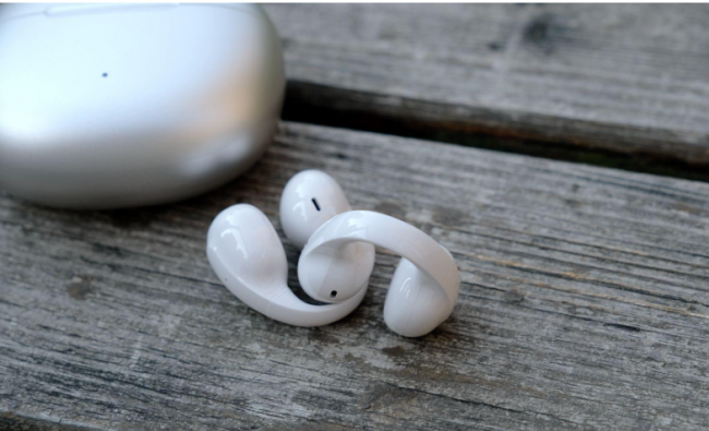 颜值很百搭,鹅卵石形状的充电仓搭配圆头耳夹设计,小巧精致,戴在耳朵上像小配饰,不突兀。不过机身采用亮面材质,容易沾染指纹,搭配一个磨砂保护套就能轻松解决这个问题。单耳仅5.4克,轻到几乎无感,连续佩戴8小时也不会留下压痕,戴眼镜的用户也不会感到硌耳,特别适合打工人日常通勤、办公佩戴。