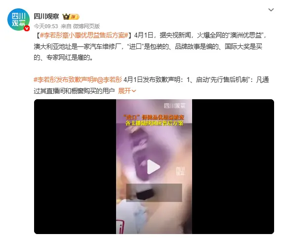 事件曝光后,曾带货过优思益的明星纷纷紧急表态,而李若彤是其中反应最快、态度最诚恳的一个。她在致歉声明里,字字恳切,没有任何套路,咱还原几个最戳人的细节,均来自声明原文,不添油加醋:首先,她直言自己“感到深深的震惊、愤怒和自责”,作为曾经推荐过该产品的买手,承认自己在选品试用期间,没有进行更深入的背景调查和核实,尤其是忽视了对产品产地真实性的严格把关,直言“这是我的严重失职,辜负了大家对我的信任”。