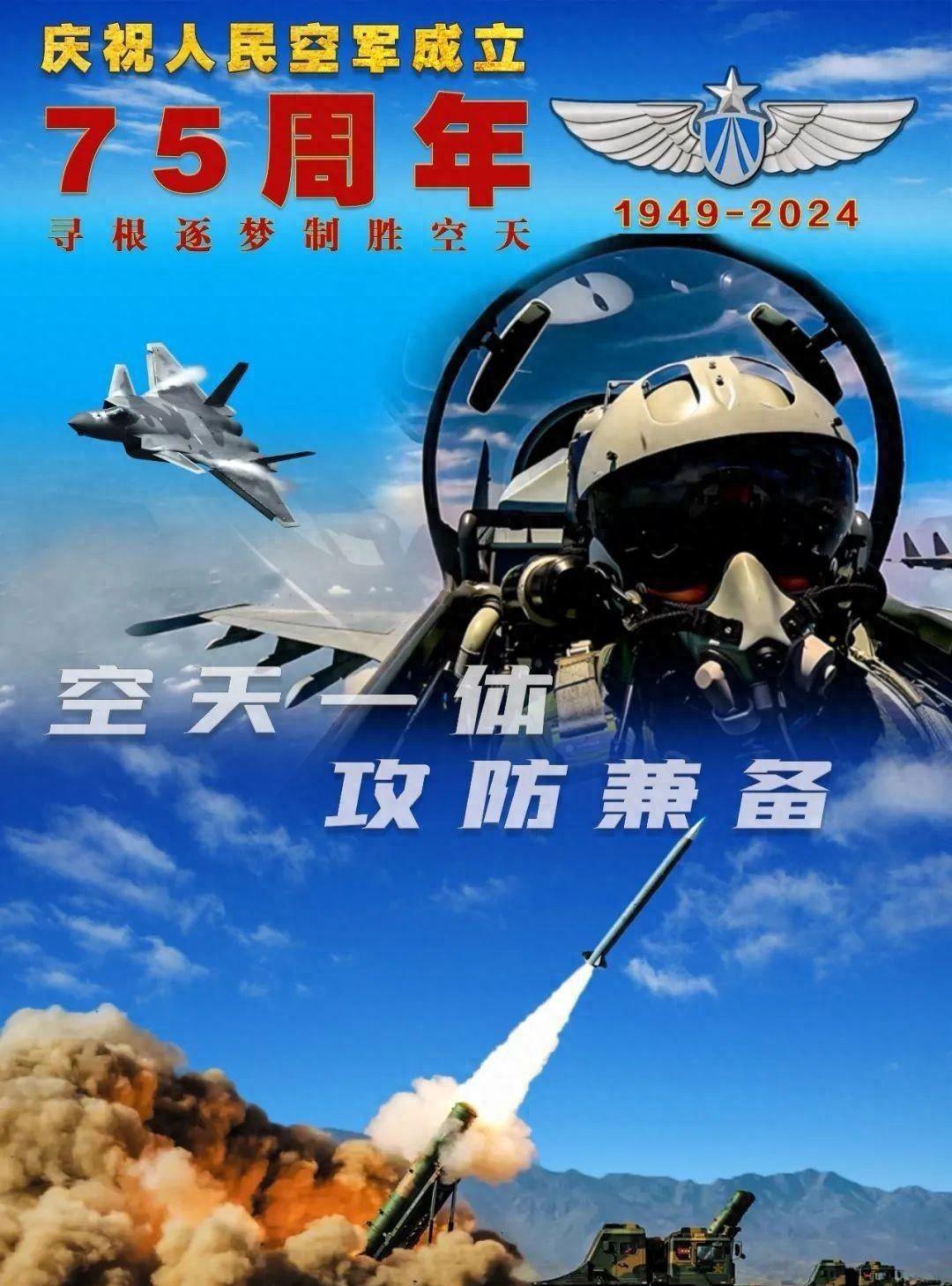 题记:今天2024年11月11日,中国人民解放军空军成立75周年纪念日。75年来,人民空军从无到有、由弱到强,逐步发展成为一支空天一体、攻防兼备的强大空中力量,捍卫了我国主权安全和发展利益,维护了世界和平与安宁。今作律诗一首【七律•人民空军颂】,谨以纪念并述怀与记之。如是: