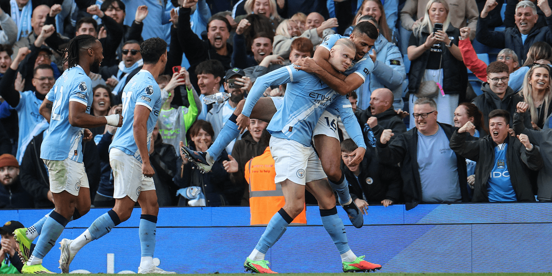 随后,曼城再次占据主动,并由哈兰德完成致命一击。多库左路推进后分球,奥莱利横传门前,皮球几经转折后落到哈兰德脚下,他在八码处冷静破门。