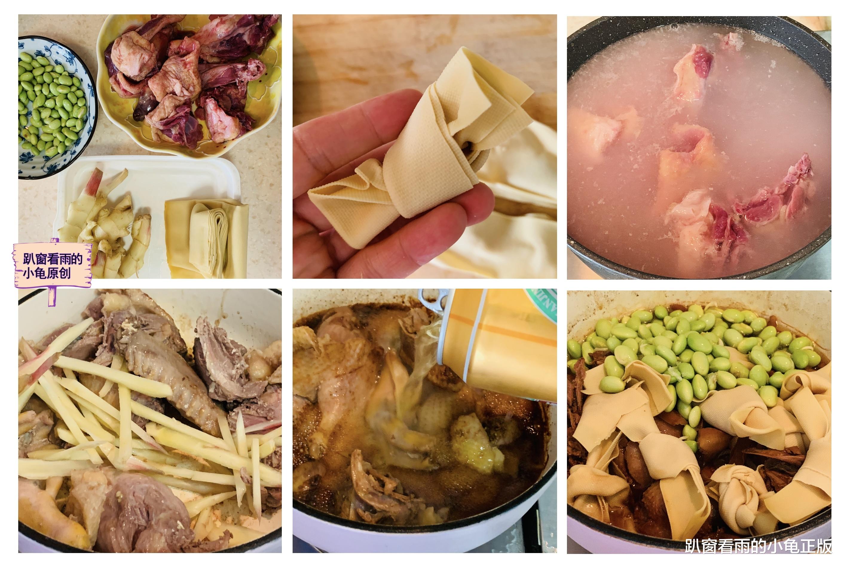 4、40分钟后下入豆皮卷和毛豆,再继续炖15分钟,即可收汁关火。