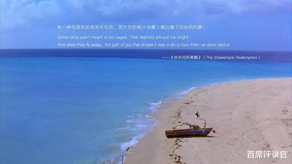 影片的最后一幕,瑞德穿过边境,站在浩瀚的海边,远远地看见安迪正在修理一艘小船。