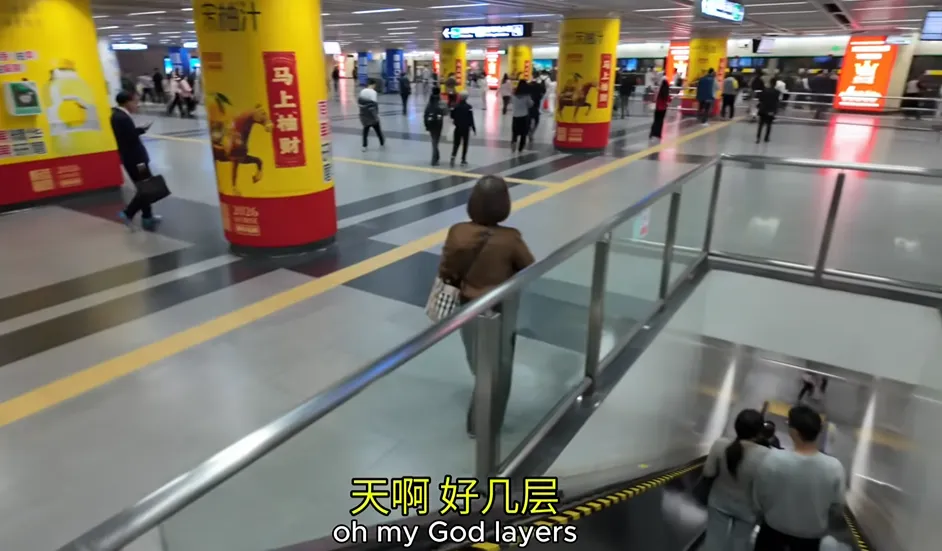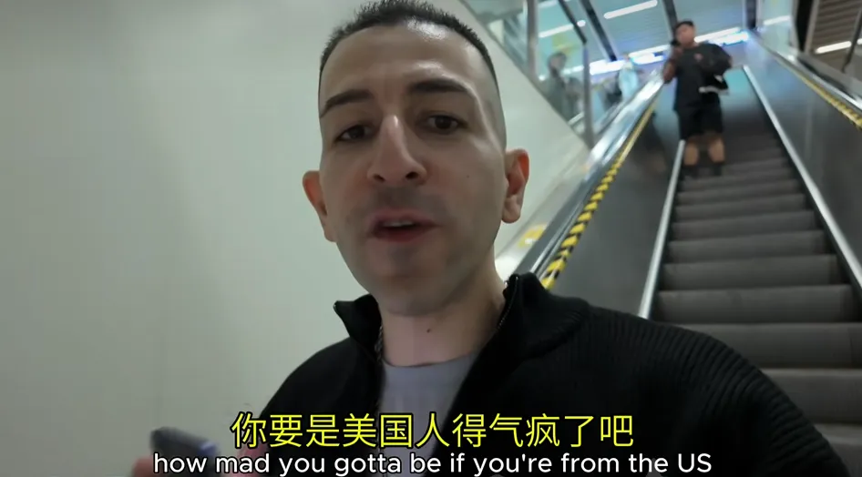 视频中,碳水哥先是来到了深圳的地铁站,刚坐电梯往下走时就被中国的基建震惊了,电梯明明是往下的,中间却还会经过好几层地铁站,全程不仅整洁有序,而且看起来非常先进。碳水哥直言,如果看到这做我一个美国人得气疯了吧,反正我是气疯了,和美国的地铁站对比这里简直是天堂。