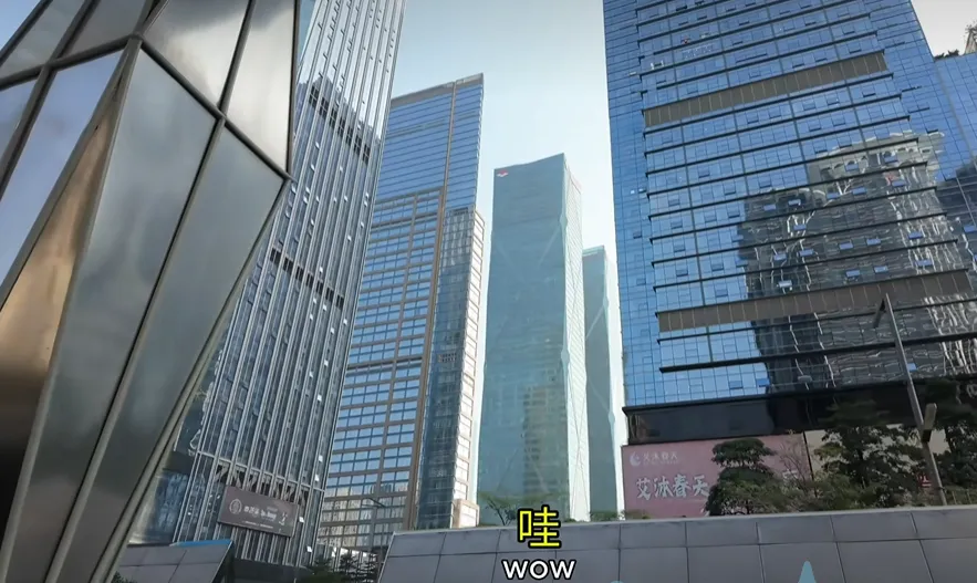 出地铁站后碳水哥再次被深圳的高楼大厦震惊了,高楼耸立又长又粗,没错这就是碳水哥的原话。