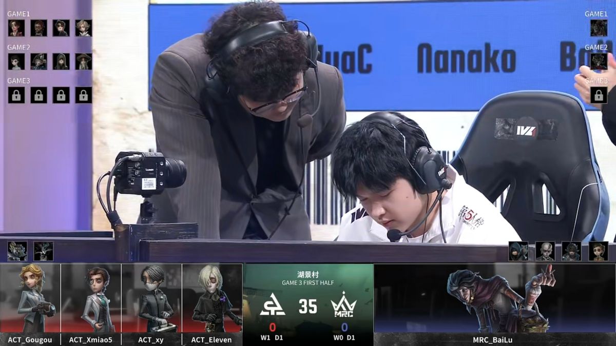 ACT的求生者选择了记者、小说家、入殓师、守墓人(BAN“喧嚣”、时空之影);MRC的监管者BaiLu选择了杂货商。(BAN先知、“逃脱大师”、飞行家、空军)