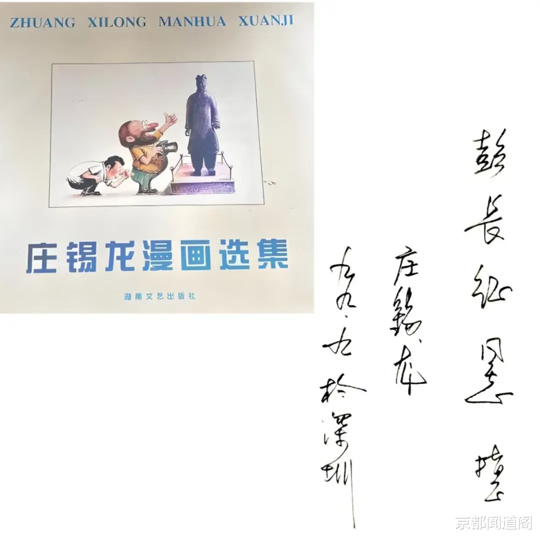 我第一次在深圳见到锡龙先生时,其相貌堂堂,身材高大,一身正气的形象,像是《水浒传》里某位英雄好汉,穿越时空站在眼前,让我肃然起敬。在他的画室,不仅即兴为我画了一幅漫画肖像,还签名赠送新出版的《庄锡龙漫画选集》,热心介绍我加入了广东漫画学会。他指点我说:漫画家应是杂家、思想家和社会责任感的评论家,手中画笔如“外科手术刀”,需准确洞察生活本质并针砭时弊。