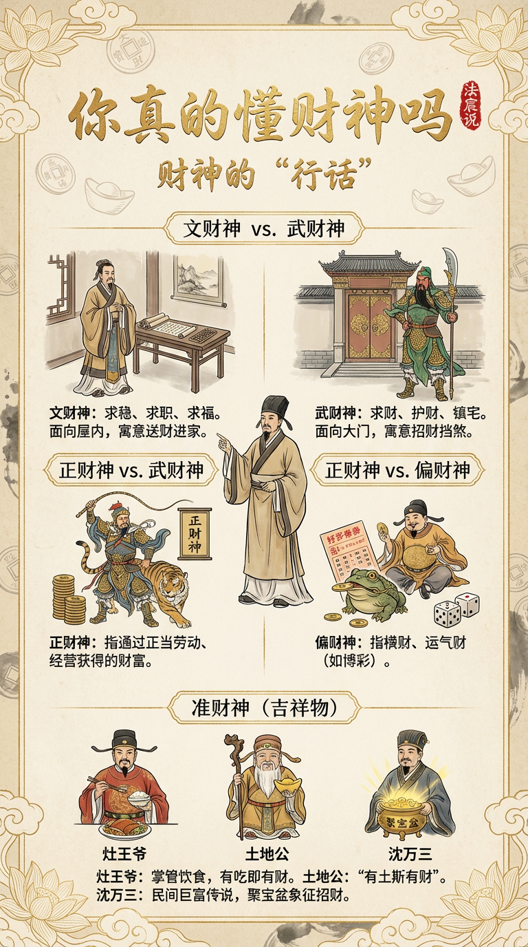 说到财神,里面的门道不少,绝对不是“见神就拜”那么简单。小道我给大家来个通俗易懂的,包您下次去庙里或者家里摆设时,心里跟明镜儿似的。