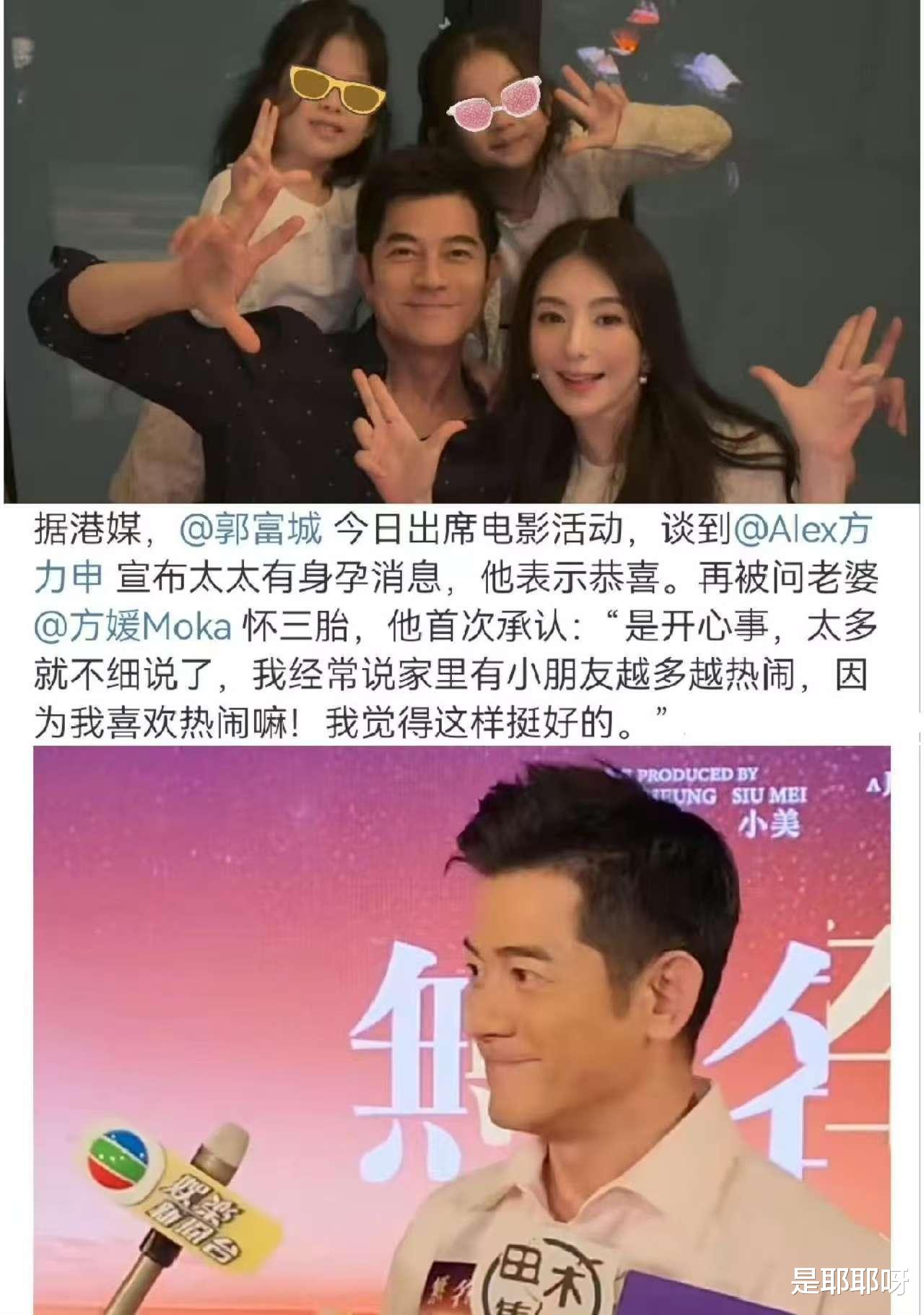 2025年6月15日,父亲节当天,郭富城在接受媒体采访时乐呵呵地宣布,妻子方媛怀上三胎了!