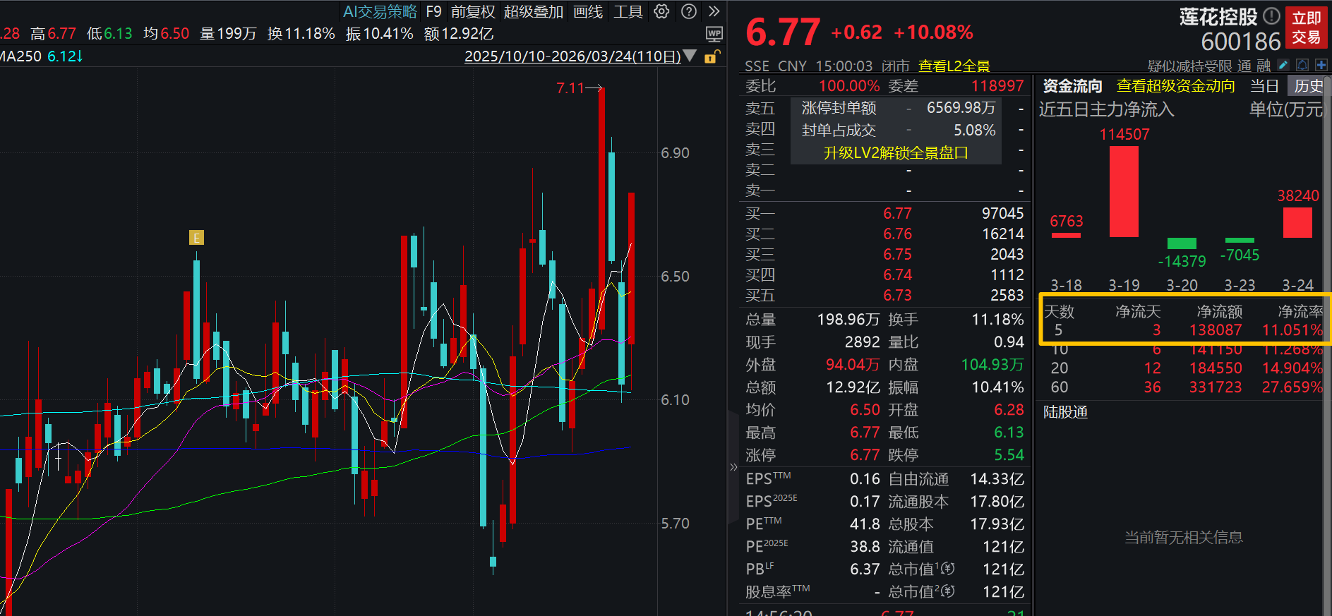 第四,公司股价仅6元出头,位置处于底部,主力单日抢筹近4亿元,近5个交易日有3个交易日净流入近14亿元。