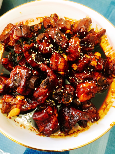 首推香酥糖醋排骨,色泽金黄,外酥里嫩,酸甜可口,入口即化,令人垂涎三尺。要制作好香酥糖醋排骨,关键是爆炒火候和糖醋酱汁的比例。肉要先用淀粉拍匀,再裹上鸡蛋液,轻轻裹上蛋青面,用油锅爆炒,炒至呈金黄色;再炒入葱、姜、蒜末,加入醋、糖、生抽、老抽、盐、淀粉水等配料,炒匀后,倒入排骨,翻炒均匀即可。