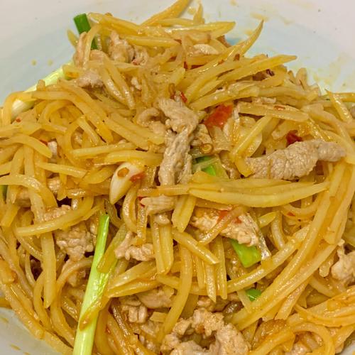 值得一提的是土豆肉丝,口感松软又有嚼头,营养丰富,融合了肉质和蔬菜的特色,尝起来别有一番儿味道。制作方法很简单,选用新鲜无疵的土豆,去皮切成条,同样切成细丝的猪肉用水焯一下,用葱姜蒜和其他调料拌匀,倒入油锅略翻炒,再翻炒一下土豆,加入水焖煮一会儿,待土豆变软后,撒上些许葱花,一道色香味俱全的土豆肉丝便成功了。
