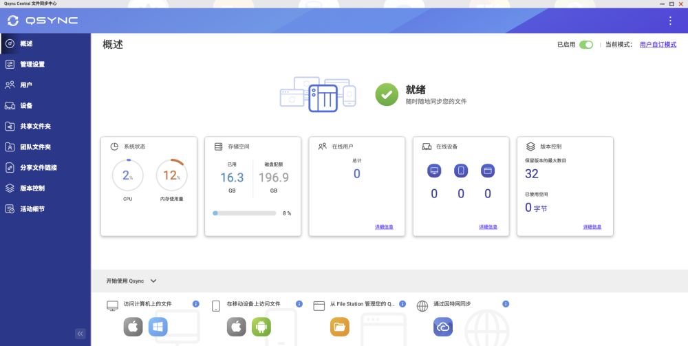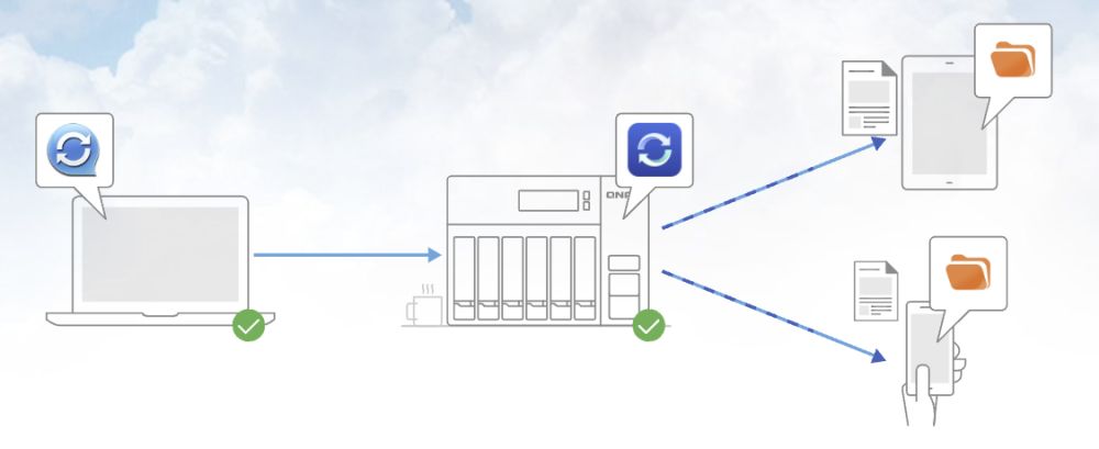 在威联通TS-464C中安装Qsync Central,在移动设备中安装Qfile Pro或者在电脑端安装Qsync Client,既可以实现数据在电脑、移动终端的文件同步。