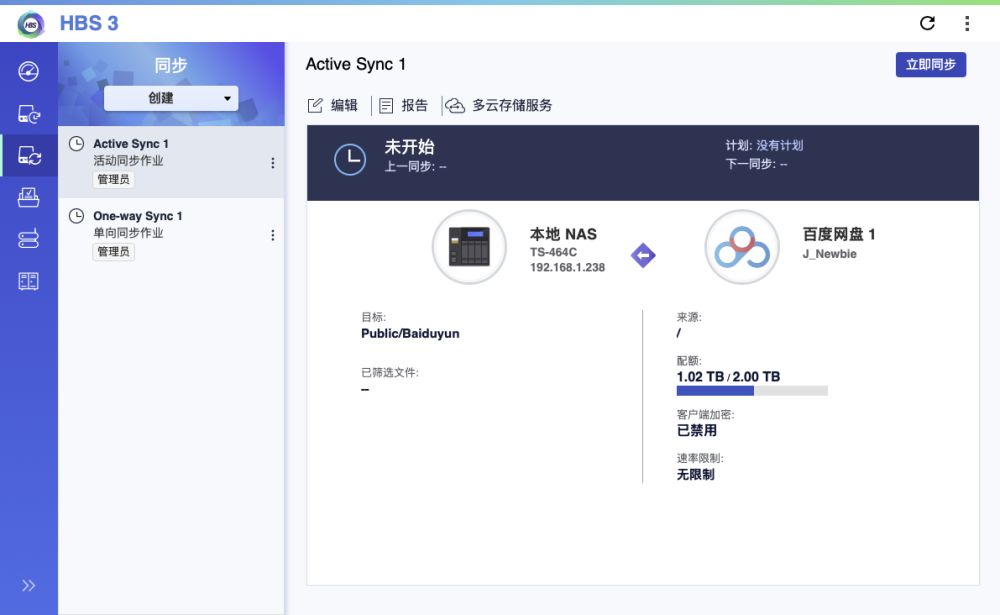 4.3数据备份-HBS3Hybrid Backup Sync是款专业的数据备份、同步、恢复的应用,能够提供企业级的服务,可以从本地、远程、云端将备份、同步、恢复到本地、远程、云端。而作为自己家庭使用,自己目前更多的是用来将百度云、其他NAS或者其他云