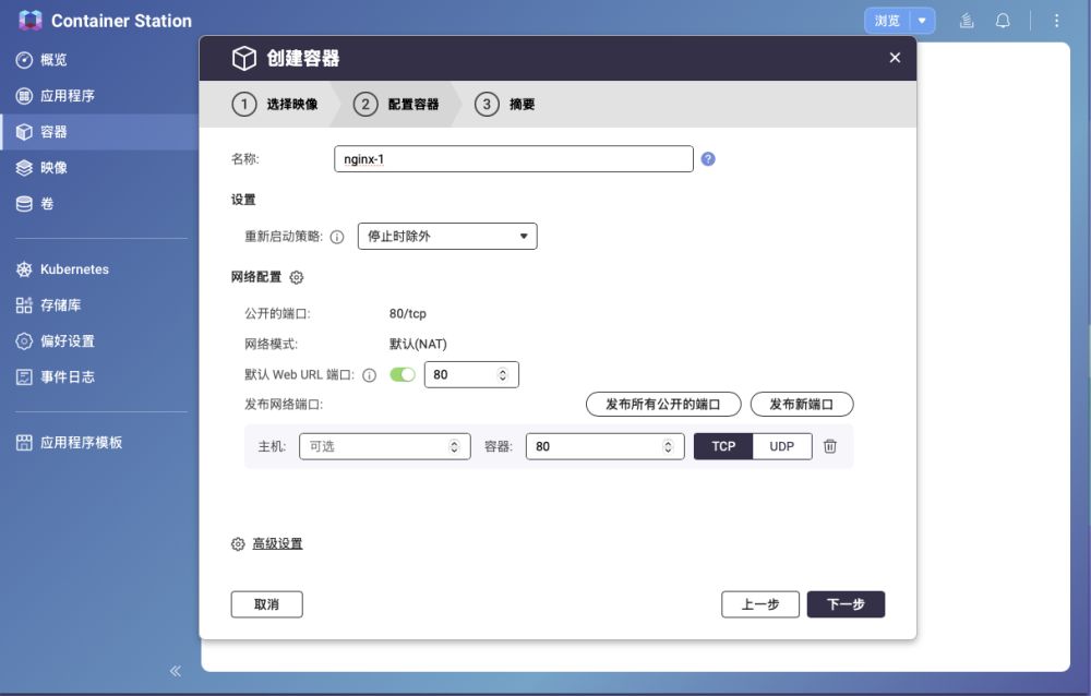 在容器菜单中选择已经下载的映像,然后一直下一步就能完成docker的安装和运行。整个安装过程是不是比用指令安装更简单。