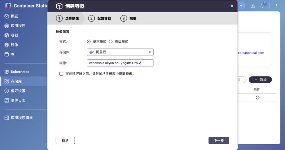 安装“映像”(镜像)之前可以配置一下第三方的存储库,这样就既是无法连接DockerHub也能获取到docker镜像。