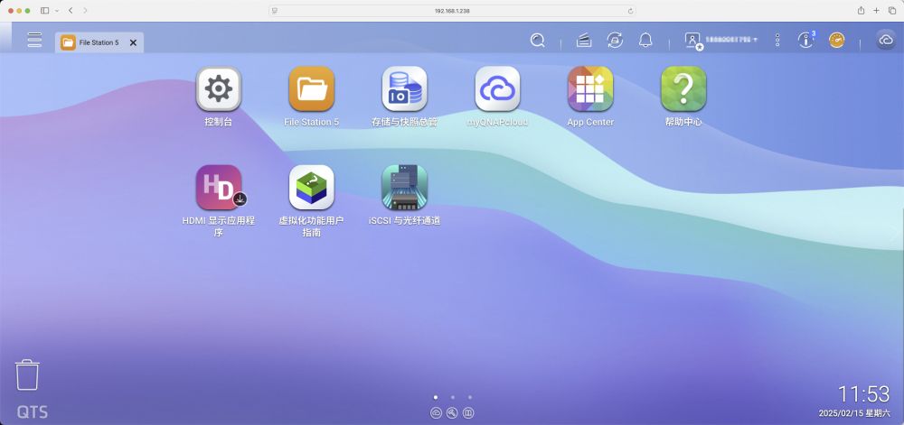 在登陆界面输入初始化时设置的账号和密码就能登陆到QTS系统的UI页面,乍一看就跟我门的Windows操作系统一样,有自己的文件管理、设备管理、AppCenter(应用商场)等等,简单直观的操控界面可以让用户轻松上手。
