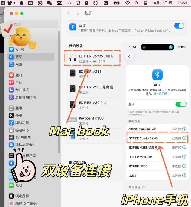 而且它有个像是“双卡双待”的功能,我的工作电脑和个人手机同时连着,哪个设备来声音就自动播放哪个,回微信、听会议通知两不误,彻底告别了来回手动切换的麻烦,真的太懂我们多设备党了!