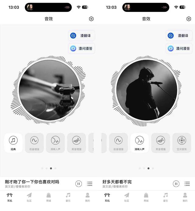 为了满足多样的听音偏好,在漫步者APP中还提供了五种音效模式供用户自由切换。 无论是追求原汁原味的“经典模式”,还是突出人声细节的“清晰人声”,或是需要澎湃节奏的“低音增强”和追求明亮通透的“高音增强”,乃至营造沉浸感的“空间音效”,都能一键切换,灵活适配从流行、古典到播客、影音的不同场景需求。