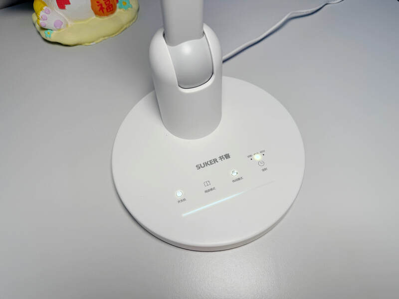 一体化设计机身,还支持灵活调节设计,灯臂可以根据需要调节角度进行升降。底座上面设计控制面板,简洁明了,开关、阅读模式、休闲模式和定时关灯四个触键,下方为亮度调节控制条。轻触即会相应,非常灵敏。底座下配有三根防滑胶条,放置桌面上很稳固,即使小朋友使用也不会轻易被推倒或滑落。