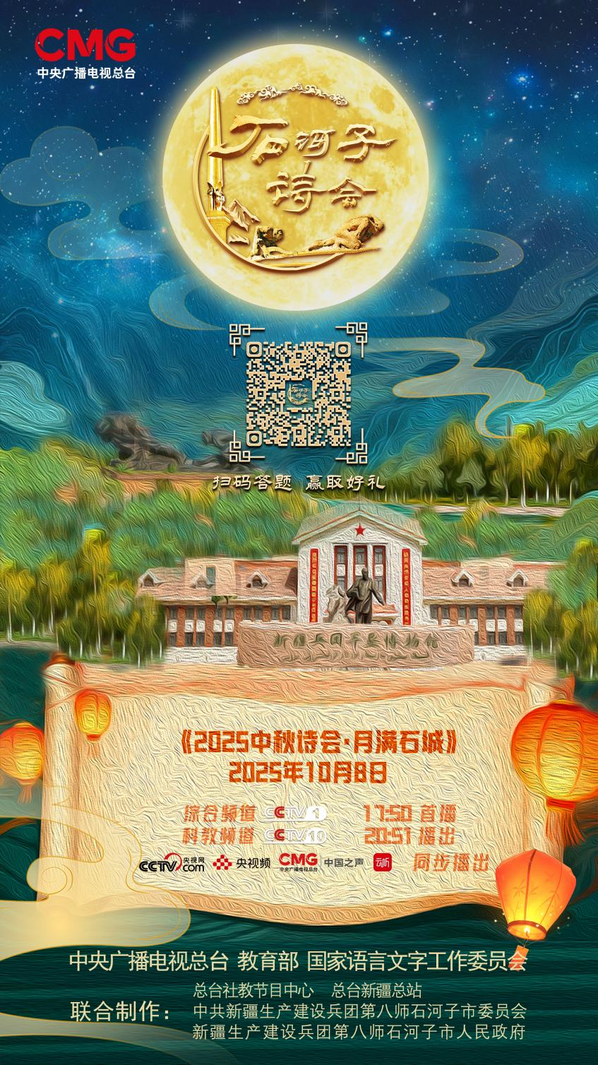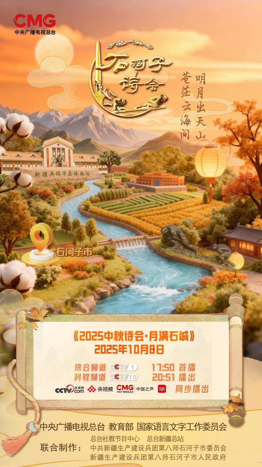 中秋的明月照过古人,也将照亮今人的路;石河子的诗行写尽过往,也将书写未来。《2025中秋诗会·石河子诗会》,通过主题化策划铸魂、时代化赋能增效、群众化传播润心,将“古来青史谁不见,今见功名胜古人”的豪情壮志融入每一个篇章,让全国观众看见新疆的生态之美、文化之韵、发展之兴,更让兵团精神与诗词文化在新时代继续焕发荣光。10月8日 17:50,锁定CCTV-1,共赴这场“明月与诗行齐辉,家国与团圆同庆”的文化之约,共同见证“戈壁明珠”石河子在千年诗韵的滋养下绽放出的夺目光彩。
