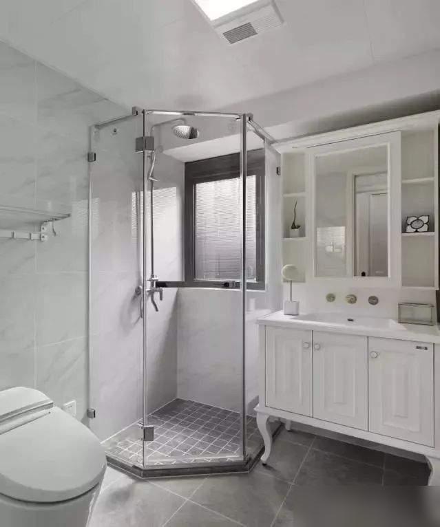 卫浴间做得比较务实。干湿分离必须给好评,淋浴房地面要是做点防滑条更好。镜柜实用,瓶瓶罐罐全藏进去不显乱。智能马桶这配置现在算标配了,老人家用着确实方便。
